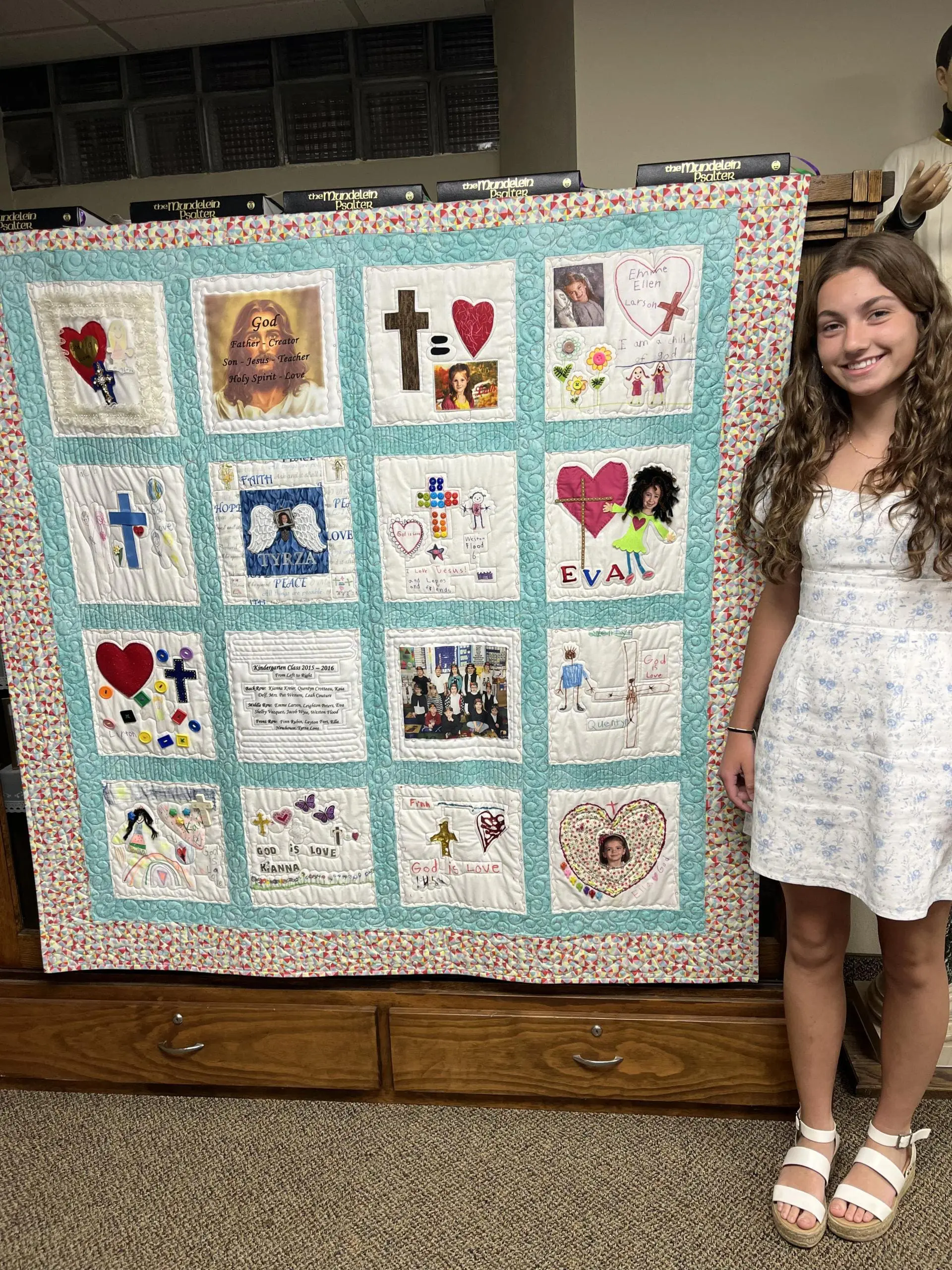 Al final de su año de 8º grado, los estudiantes tienen la oportunidad de escribir un ensayo sobre lo que ha significado para ellos su tiempo en la escuela St. Joseph. Se selecciona a un estudiante para recibir la colcha de la clase en función de su ensayo.