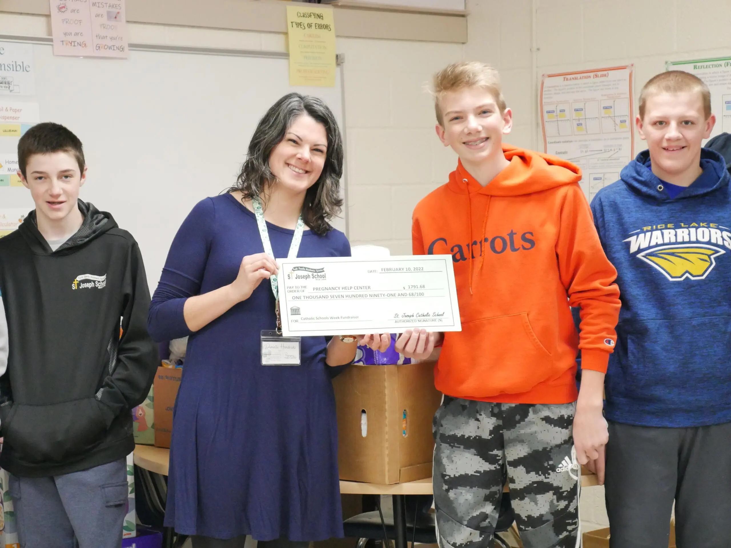 Durante la Semana de las Escuelas Católicas (del 30 de enero al 5 de febrero), los estudiantes de la Escuela Católica St. Joseph organizaron una recaudación de fondos para el Centro de Ayuda para el Embarazo. Todos los esfuerzos de planificación y promoción fueron planificados y ejecutados por estudiantes de la Escuela St. Joseph con el aula de 8º grado a la cabeza de los esfuerzos. Los estudiantes se fijaron la meta de recaudar $1,000 y 1,000 artículos (pañales, toallitas húmedas, mamelucos para bebés, otros suministros, etc.) para el final de la Semana de las Escuelas Católicas.