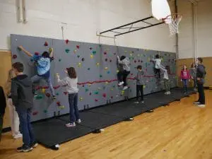 Los beneficios de esta pared de roca son dobles. A medida que los estudiantes trabajan en equipos, aprenden habilidades de comunicación ayudando y detectando a sus compañeros mientras escalan. La escalada también ayuda a desarrollar el coraje en las alturas más bajas y a confiar en los demás. Esta actividad aumentará la fuerza y el equilibrio del núcleo mientras desafía el rango de movimiento. La coordinación mano-ojo, el procesamiento sensorial y la comprensión táctil ayudan al cuerpo a desarrollar una mejor conciencia espacial. La escalada en roca se considera una habilidad para toda la vida, que es una habilidad que puede ser útil para toda la vida. En la primera semana de uso, rápidamente se convirtió en una actividad favorita de toda la escuela y los estudiantes pudieron pasar mucho tiempo de clase de educación física explorando la nueva pared.