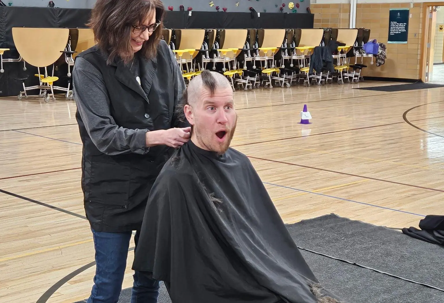 La recaudación de fondos culminó con una memorable asamblea de toda la escuela el viernes 14 de febrero. Fiel a su palabra, el padre Adam se afeitó la barba y la cabeza con la ayuda de uno de los padres de la escuela y la estilista local, Donna Gagner. El evento fue una celebración alegre del arduo trabajo, el espíritu comunitario y la dedicación de los estudiantes para servir a los demás.